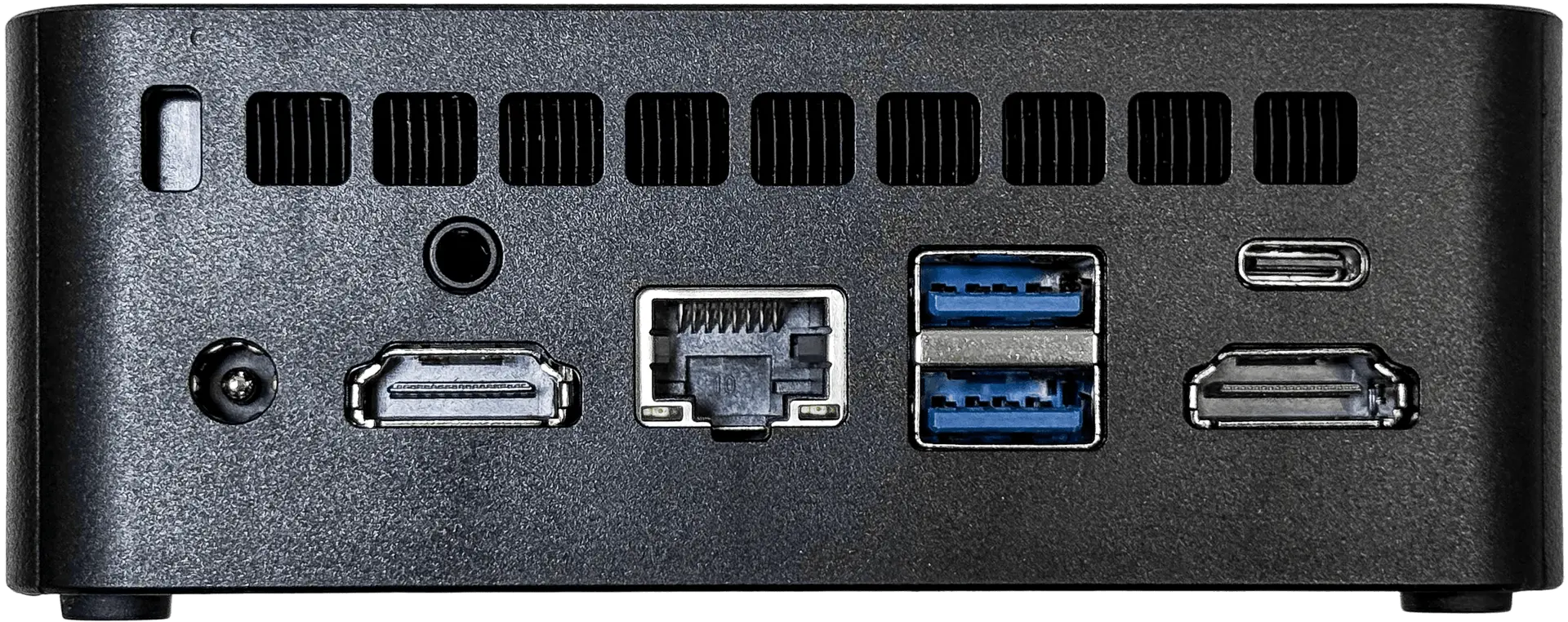 I/O Port : 1x RJ45, 2x HDMI, 4x USB 3.0, 1x 3.5mm audio, 1x DC-in, 1x Type C (full function), 1x Power on button